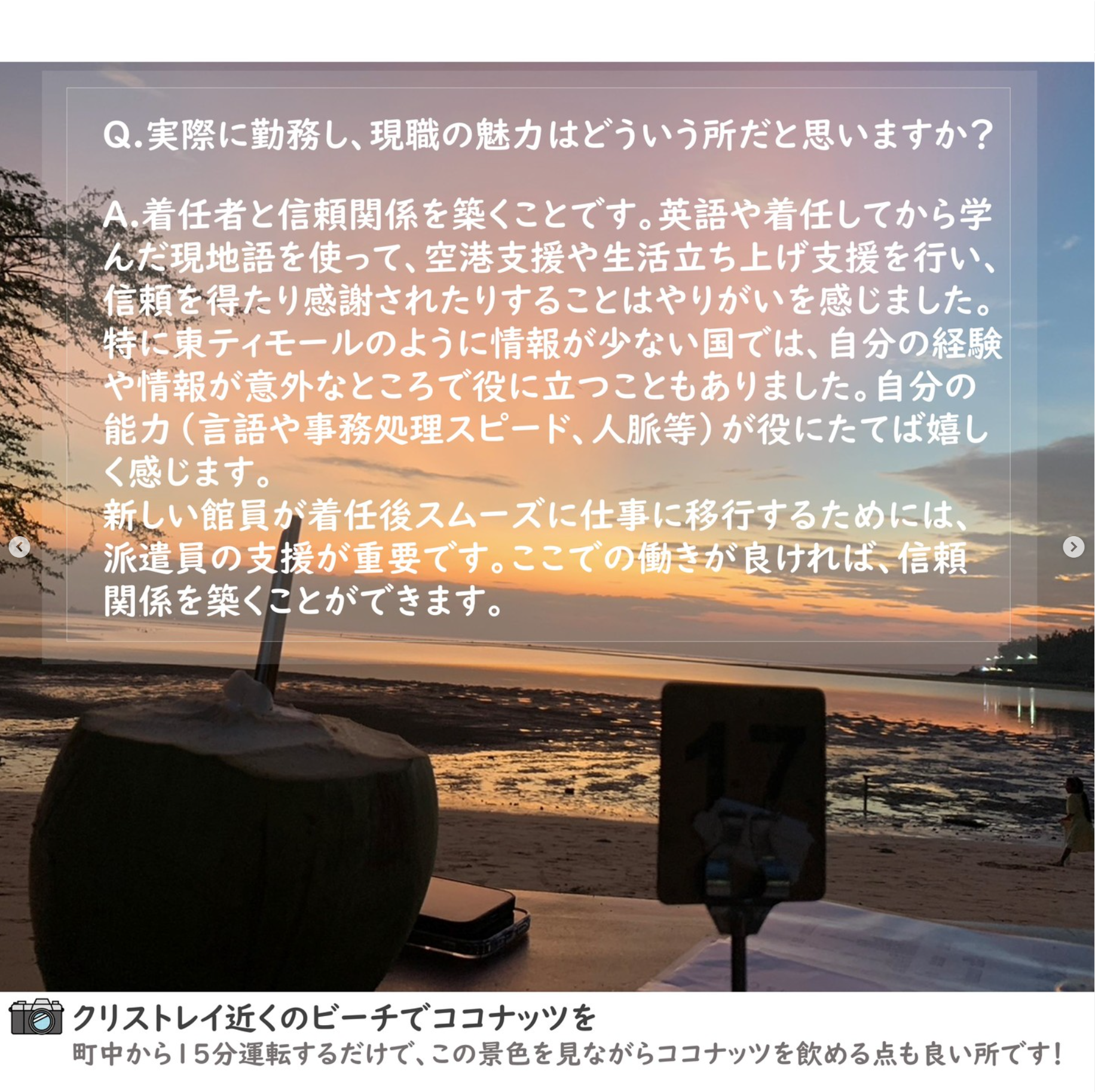 専門調査員の任期中の仕事をどう充実させるか、またその経験をどう活かすかは、本人次第です。